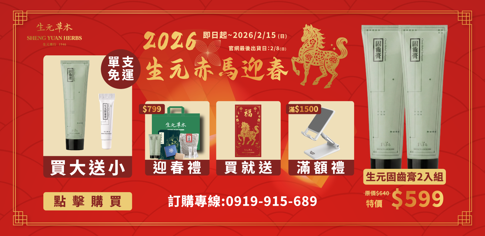 【生元赤馬迎春】 即日起至2026/2/15 生元固齒膏2支 特價599元 (原價640元)